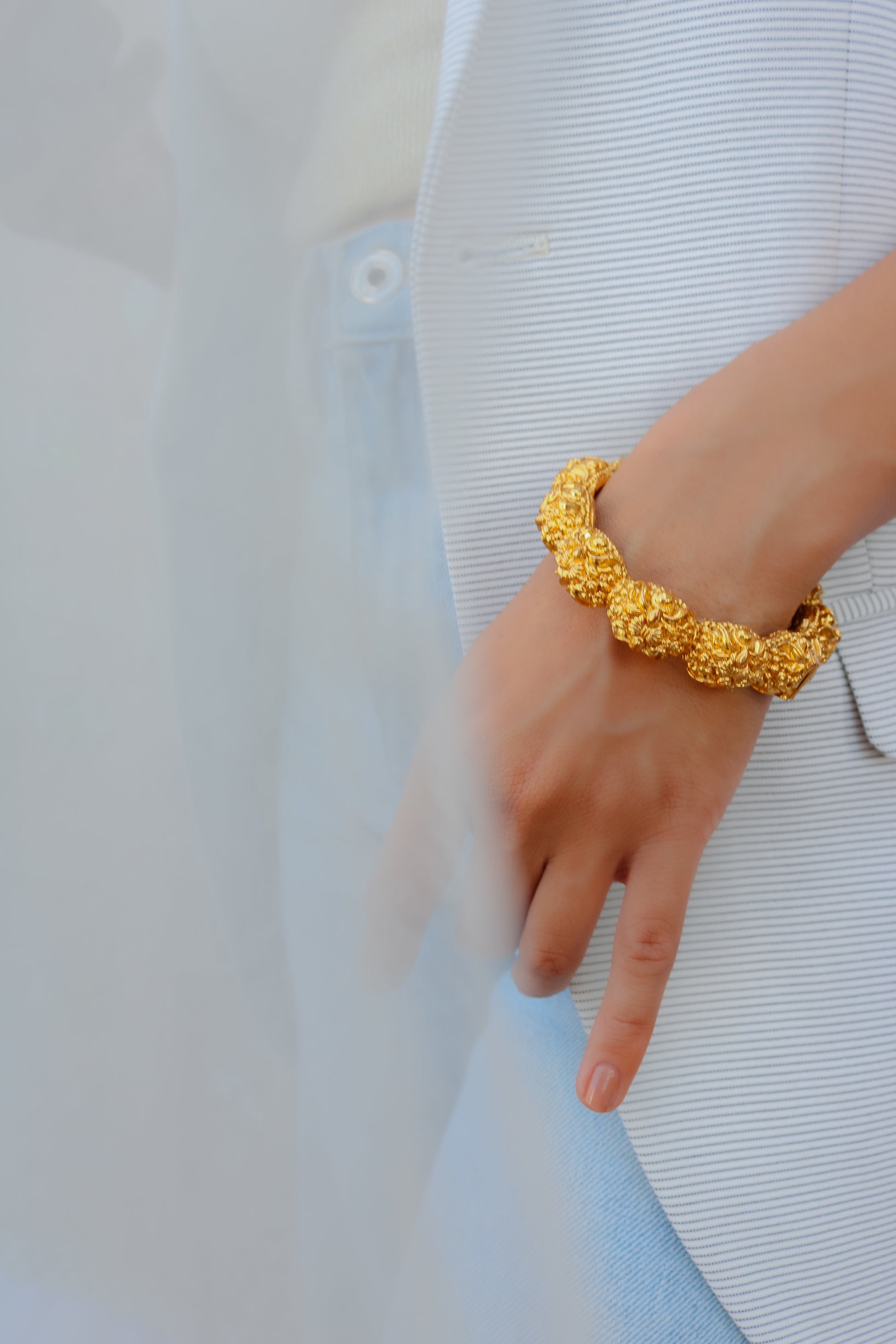 This gorgeous design features age old temple work done beautifully. The culturally rich bangle is an ode to the traditional jewellery of South India.