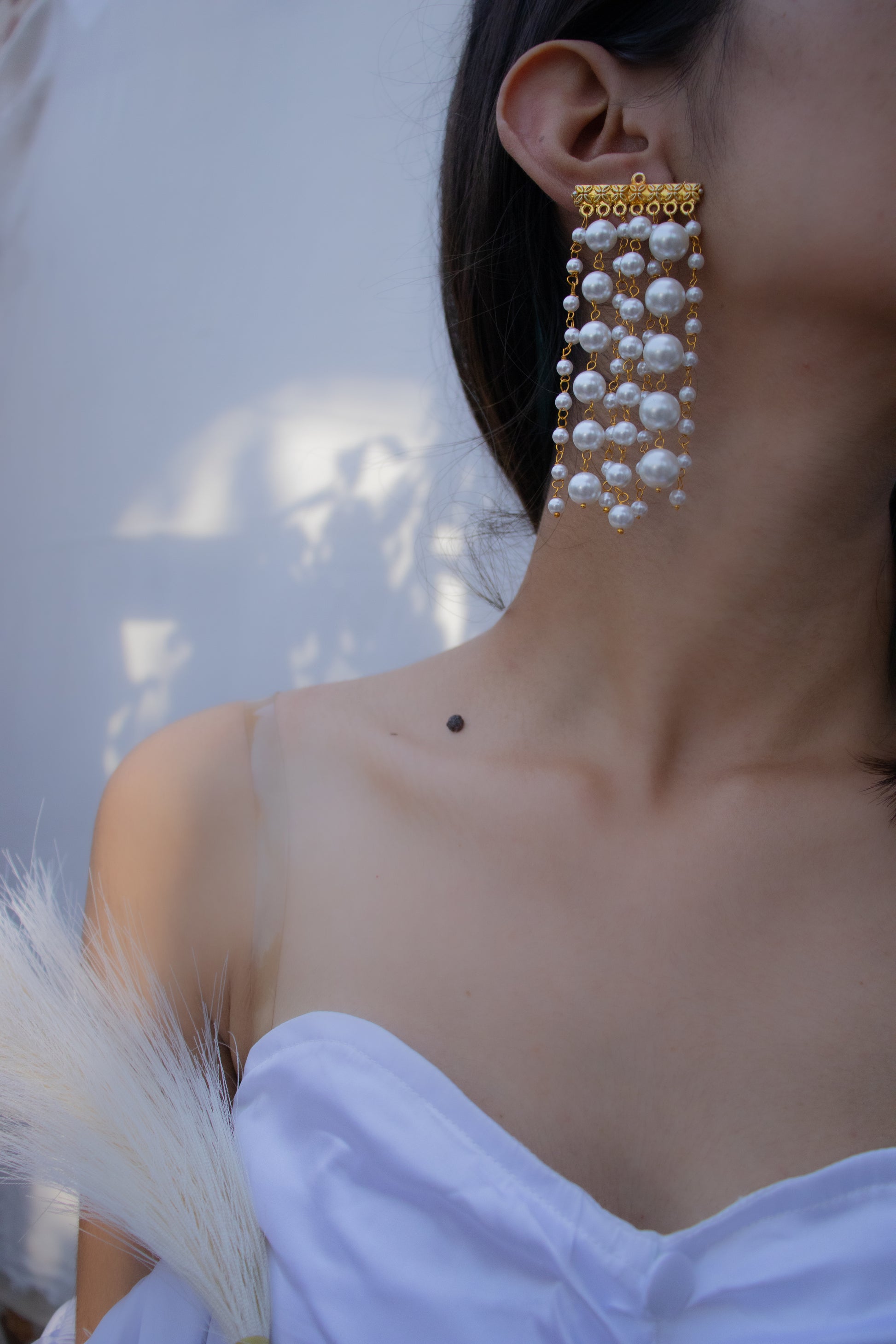 The classic pearls can never go out of style. The earrings represent pearls revamped into chic danglers with a beautiful texture added by differently sized pearls.