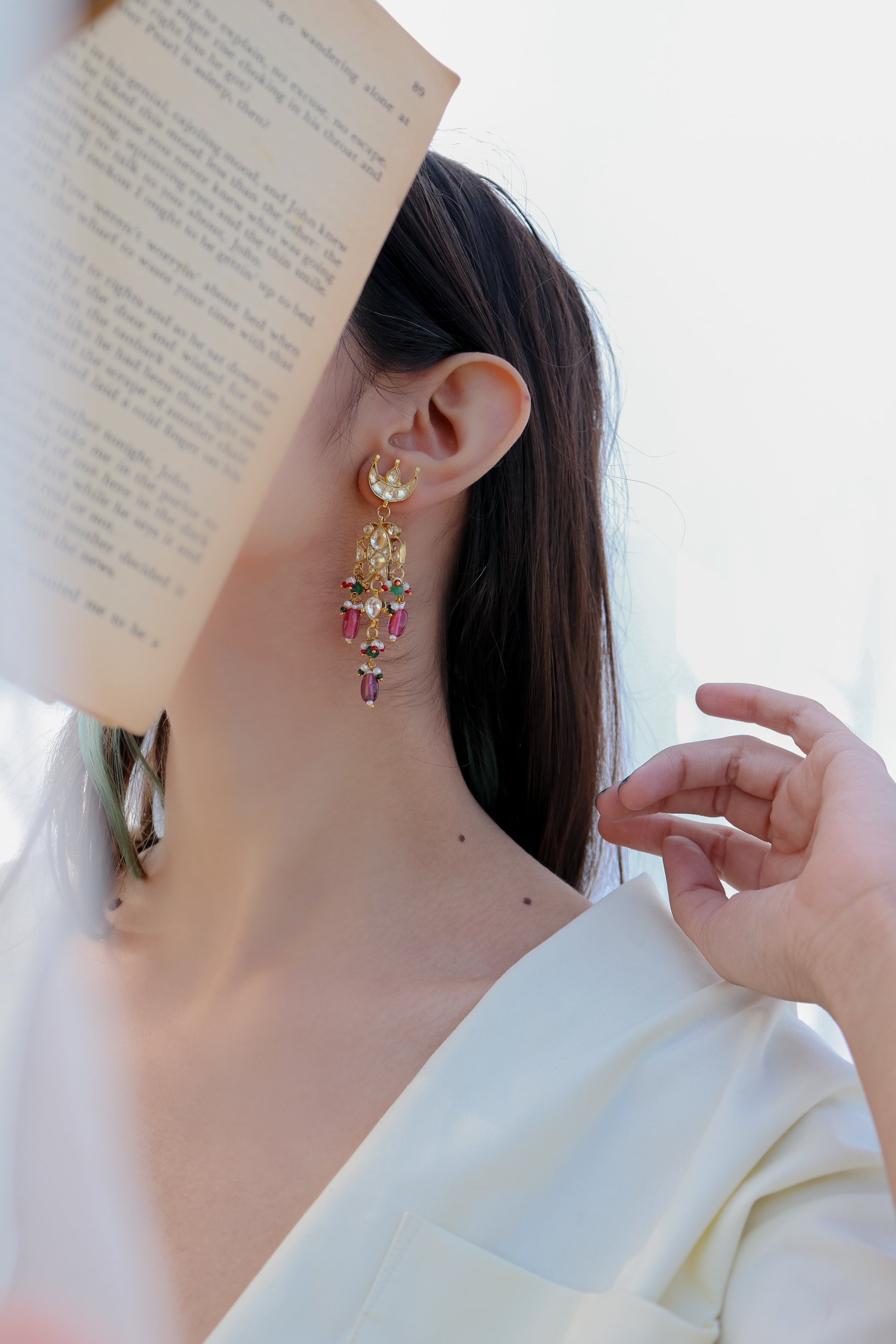 The Maira danglers boasts highlights of pink with a few glimpses of green adding hints of richness in the design. The danglers add much movement to your ensemble.