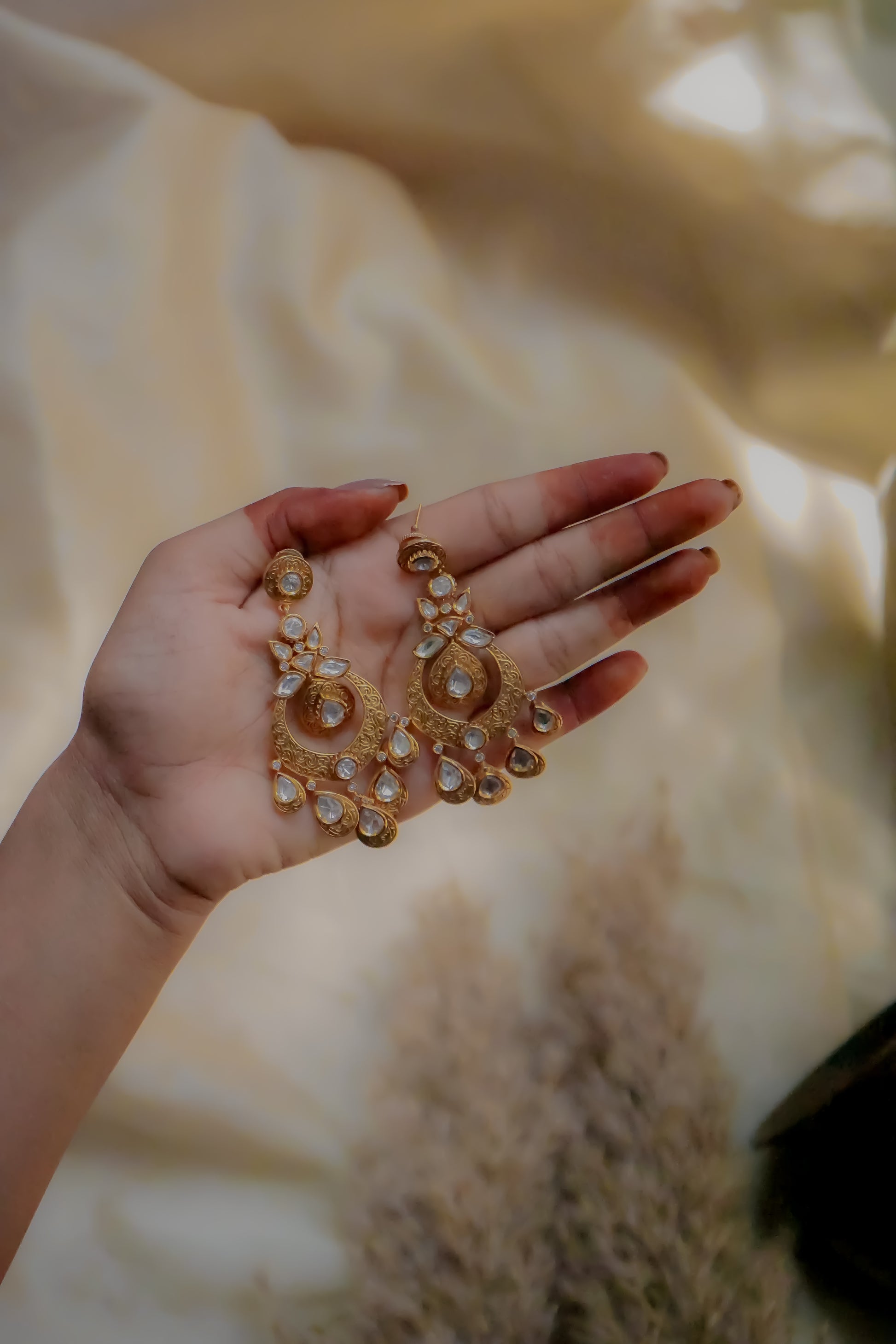 Radiate elegance with this exquisite Polki chandbali, blending traditional charm with modern flair. Its intricate craftsmanship and timeless sparkle make it perfect for both Indian and Western outfits—a truly versatile piece that enhances any look with graceful brilliance.