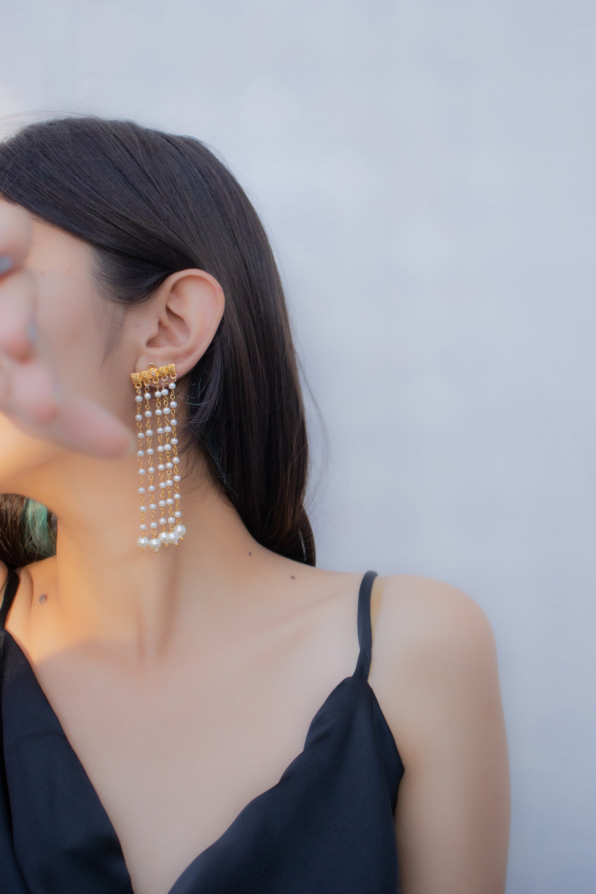 Earrings can't get more timeless than this! Classic pearls meet a very chic design. The strings of pearl form a beautiful veil, hence the name.