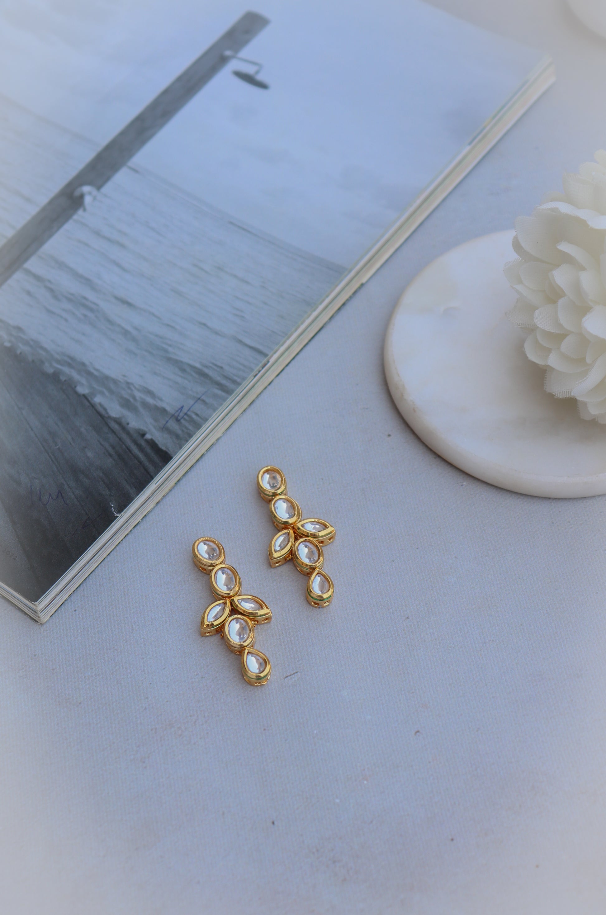 Stunning earrings meticulously crafted by joining various small Kundan tikdis of different shapes. These earrings exude elegance and charm, adding a touch of glamour to any look.