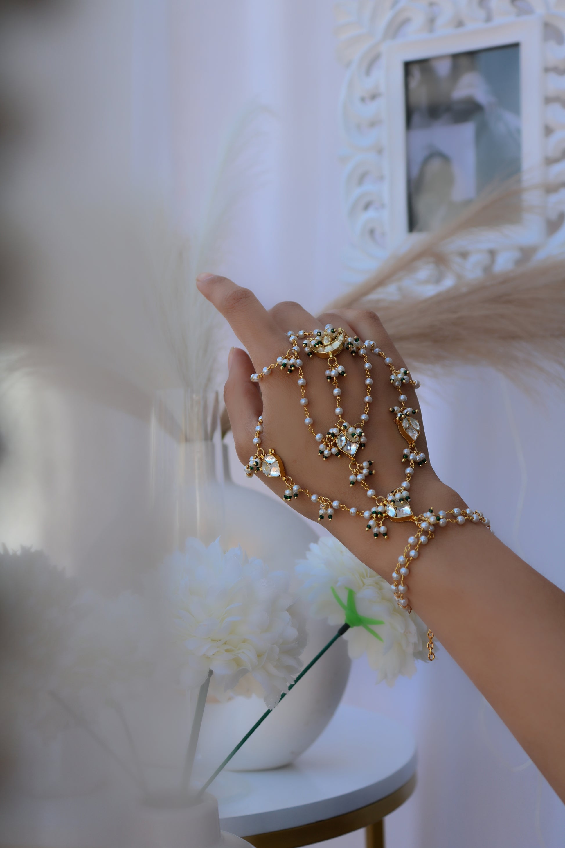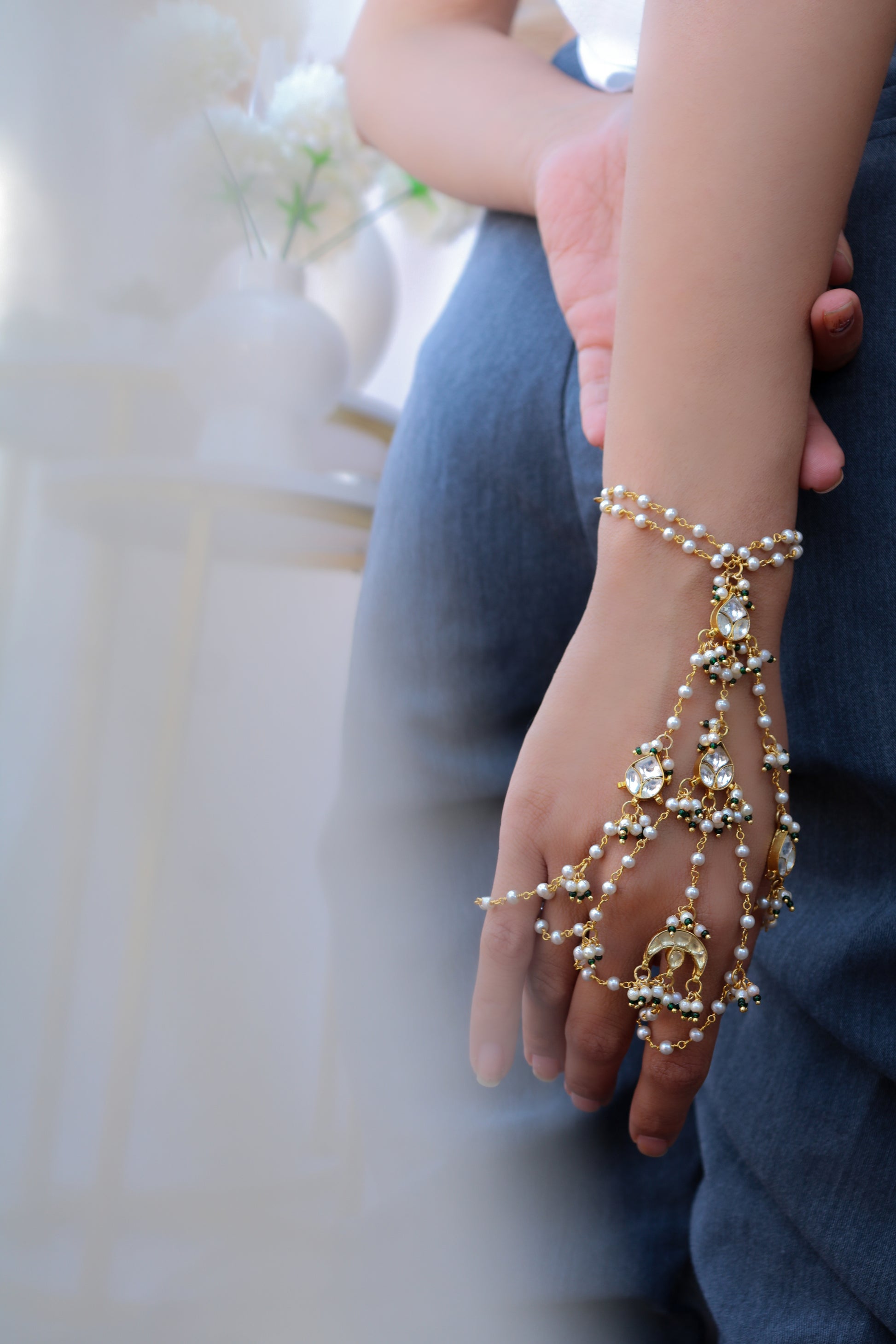 The Lenqa hathphool is a versatile design immaculately put together in a floral design. The gold warmth of the design screams celebration.