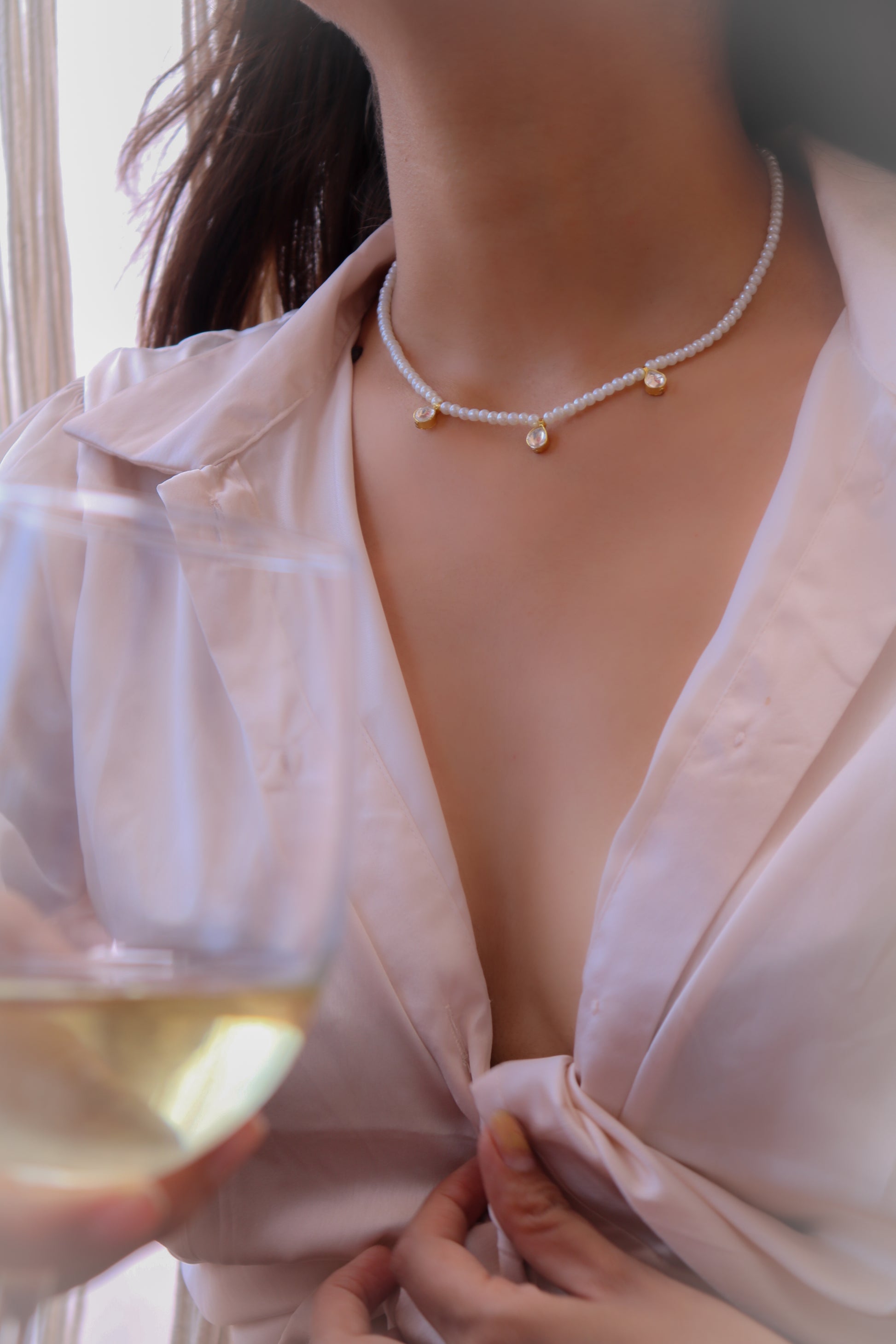 The Kistle necklace features pearls and kundan drops. The design is a pretty versatile accessory that compliments almost all outfits.