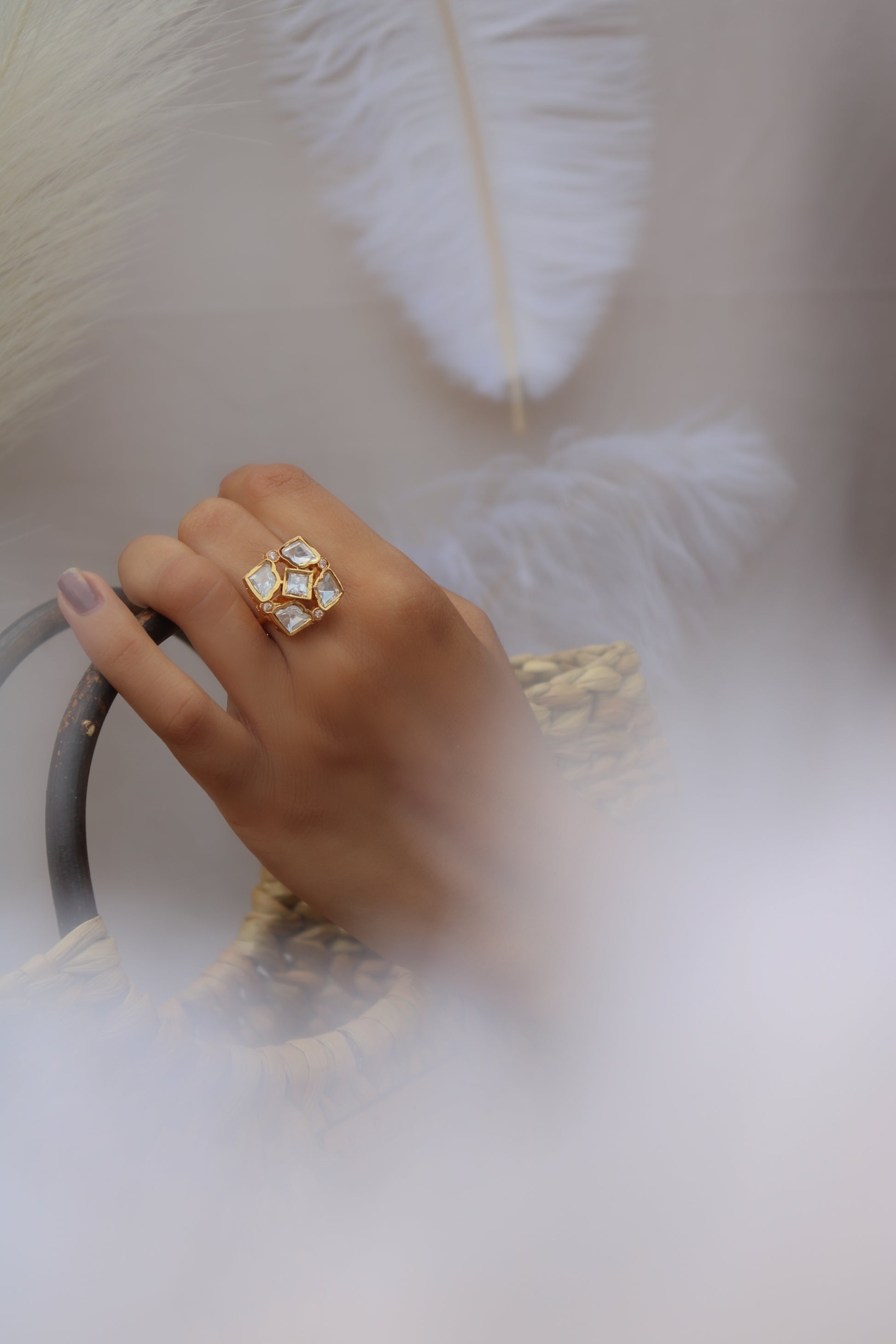 The Maneer polki ring features a chic design that is evidently an attention grabber. The versatile palette makes it a go-to accessory.