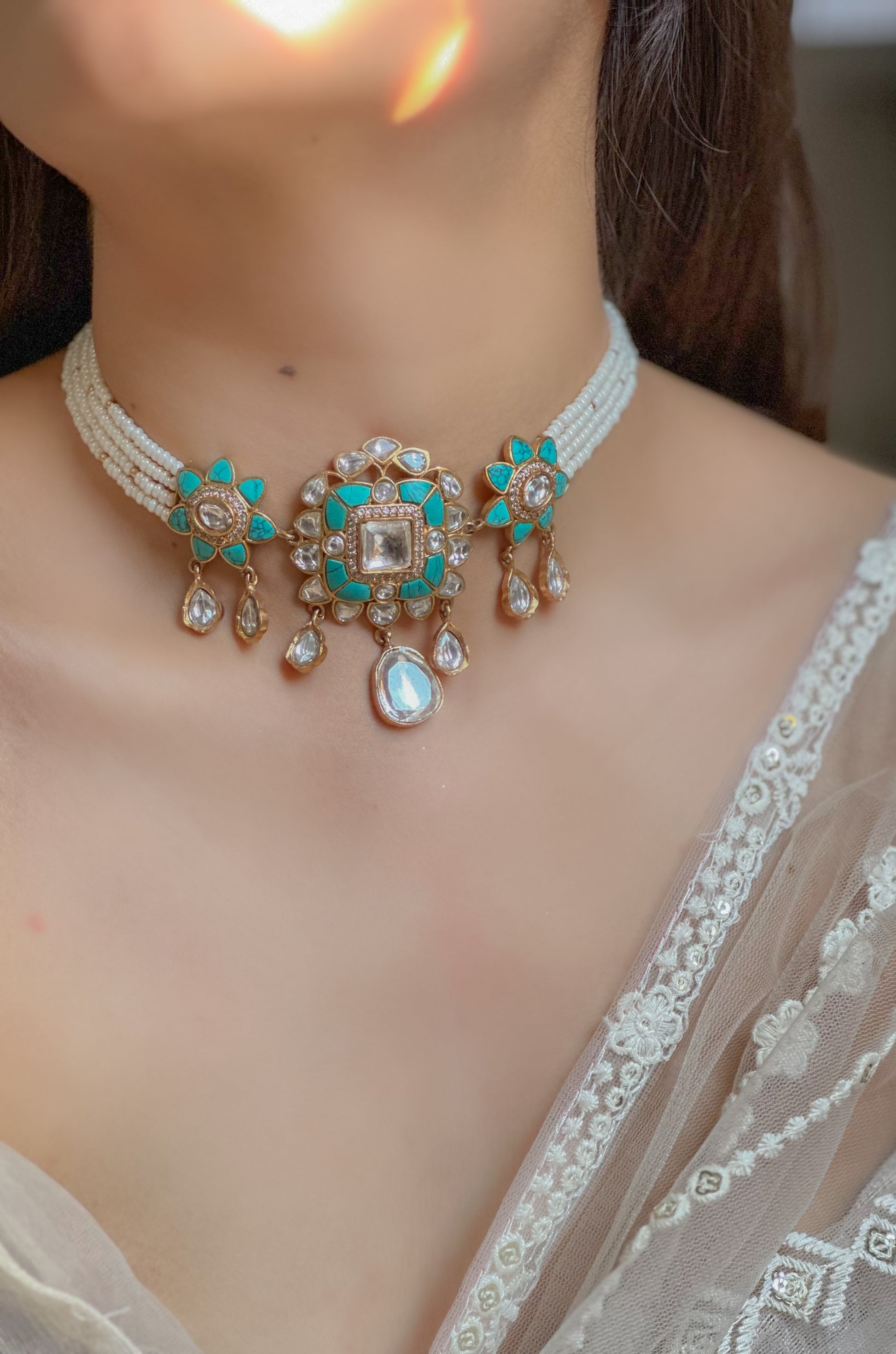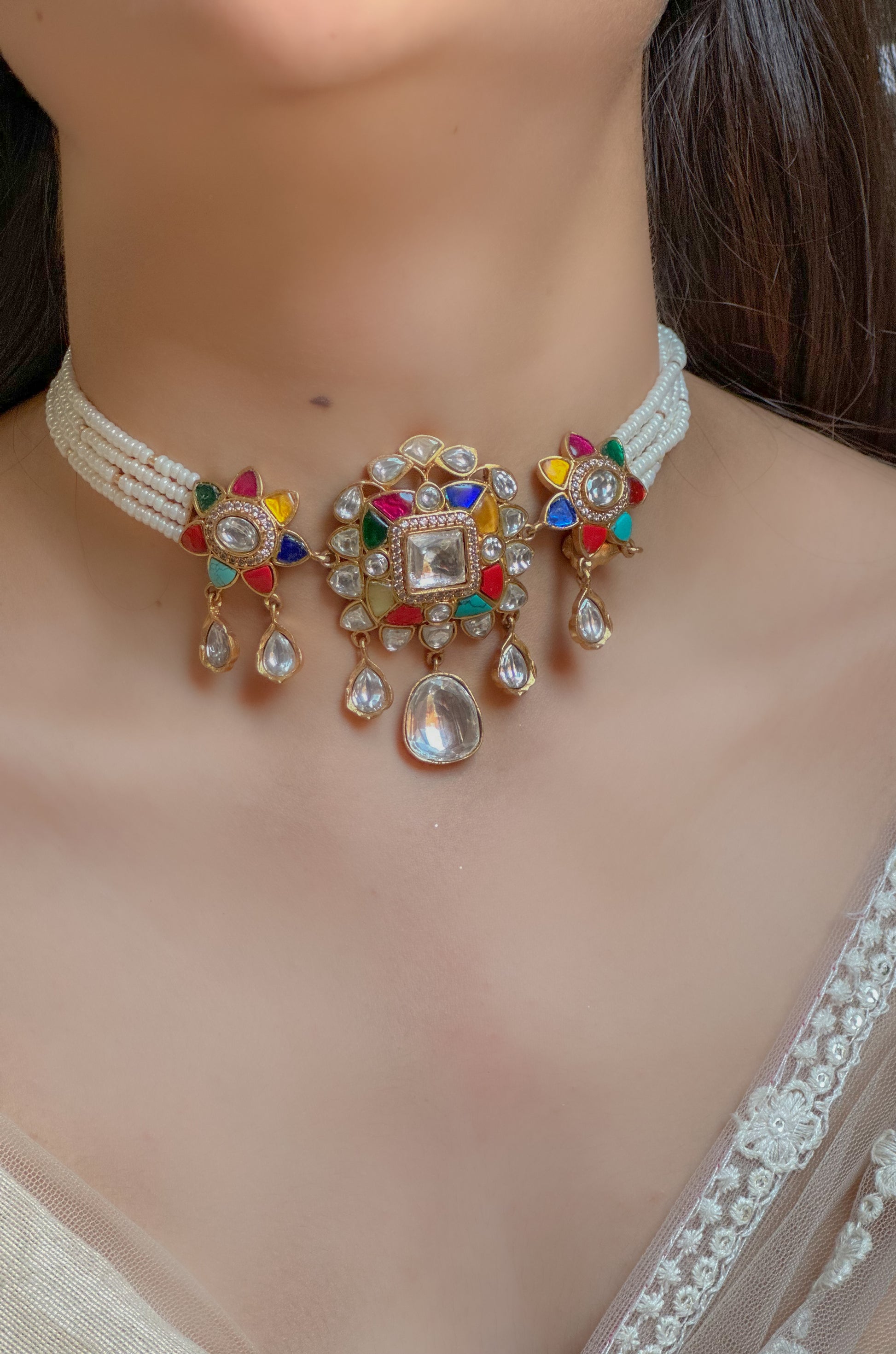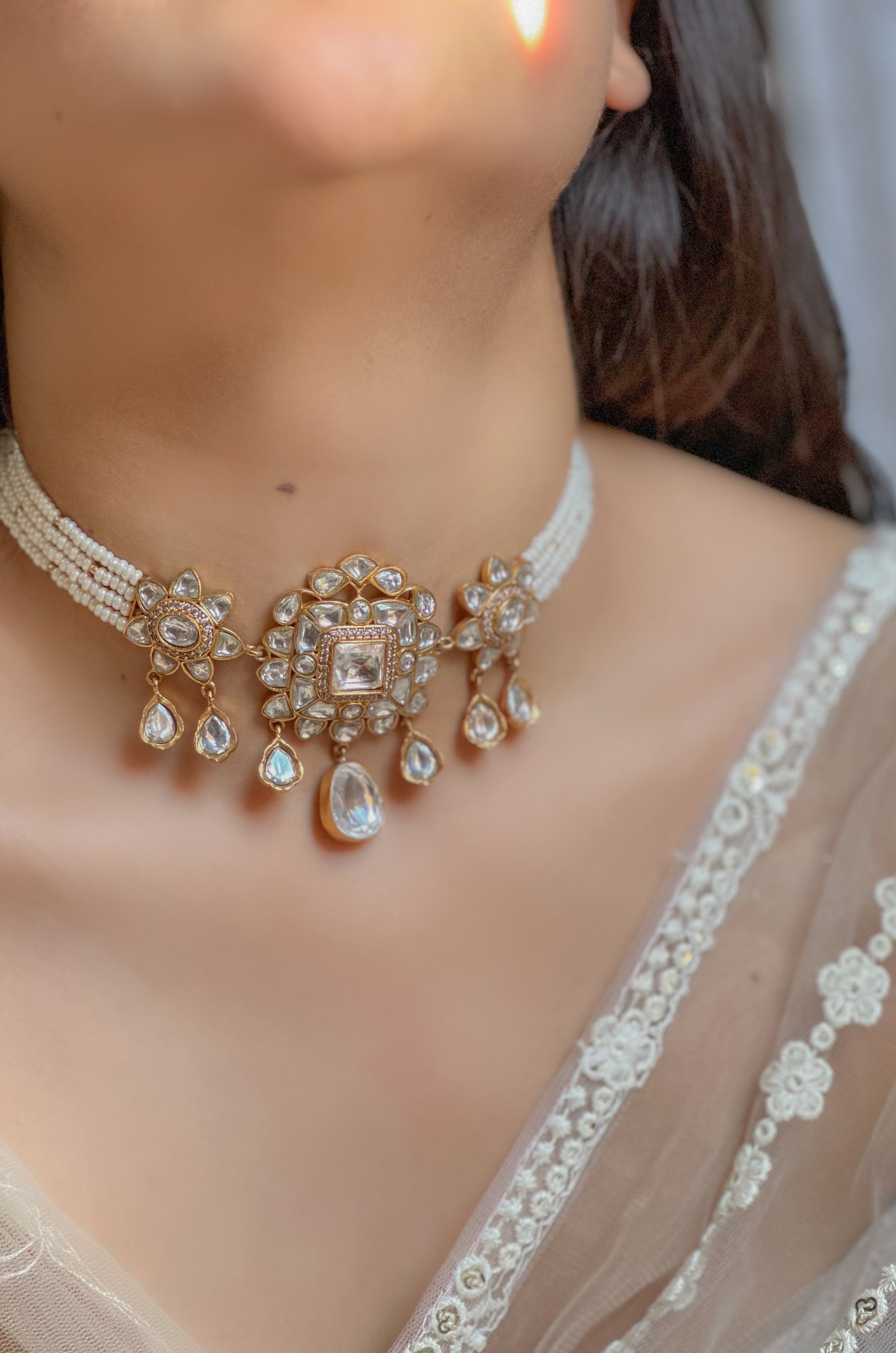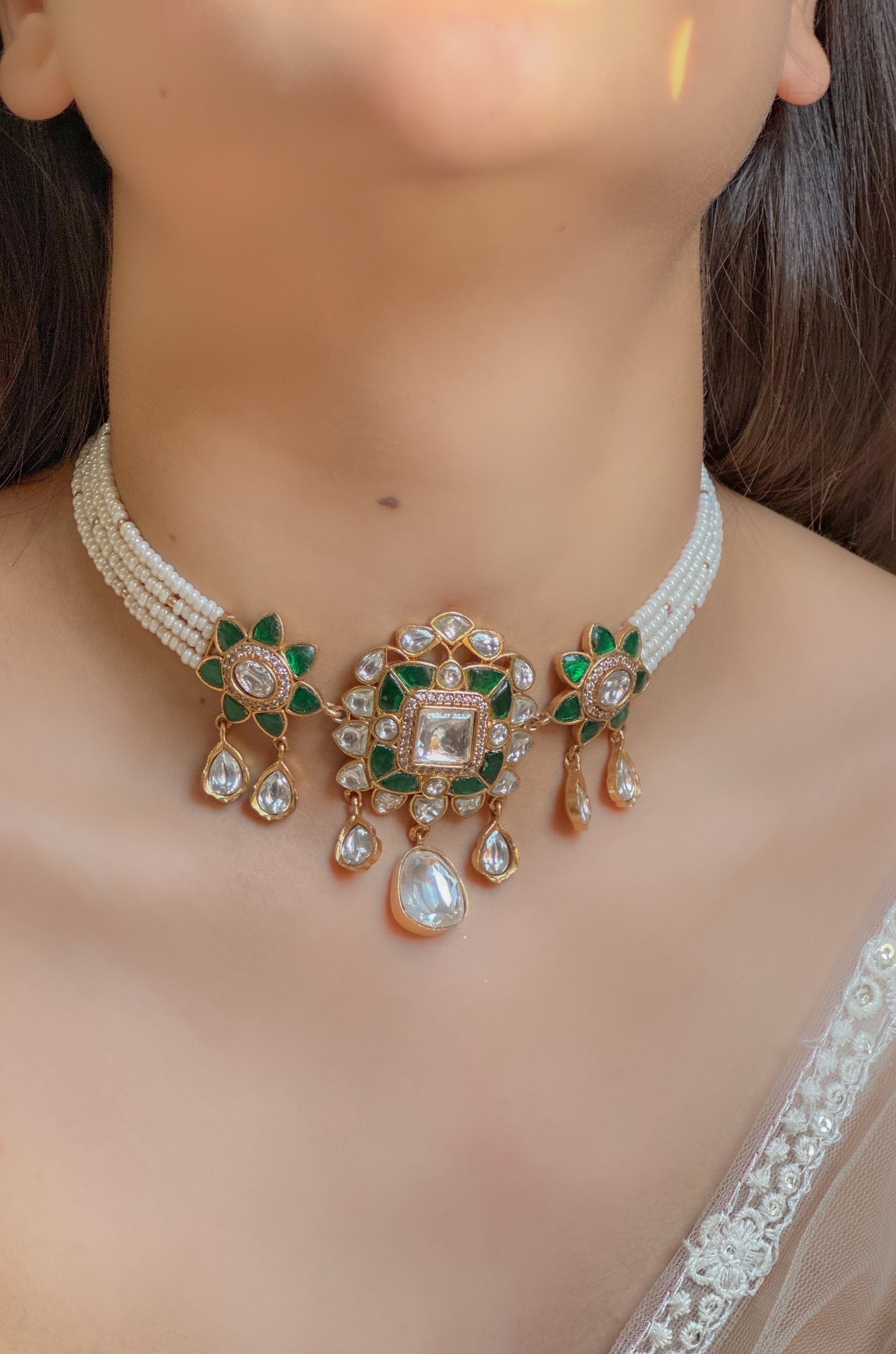 - Material- Silver Alloy, Polki, Pearls