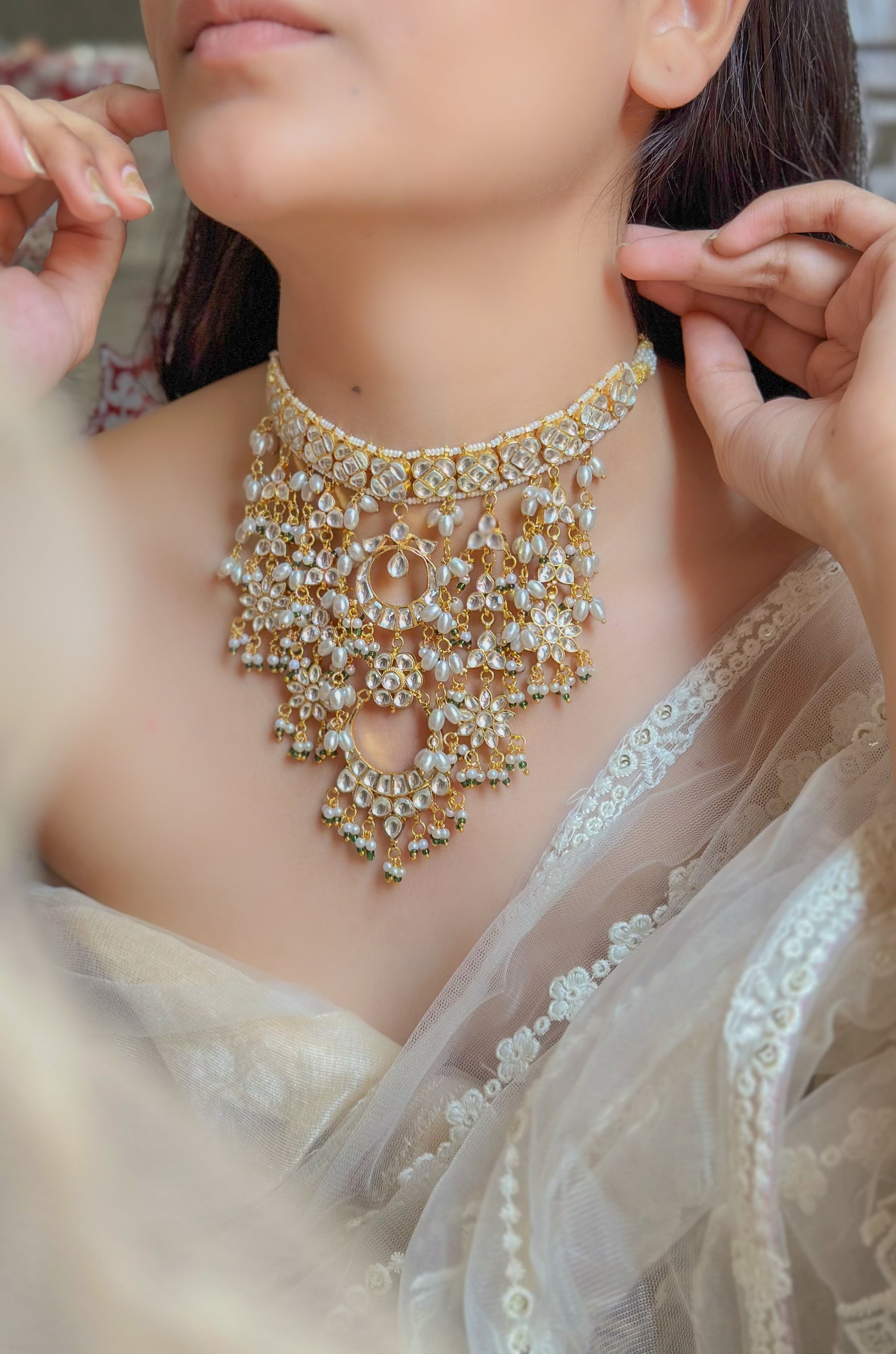 - Material- Silver Alloy, Kundan, Pearls, Semi-precious Stones