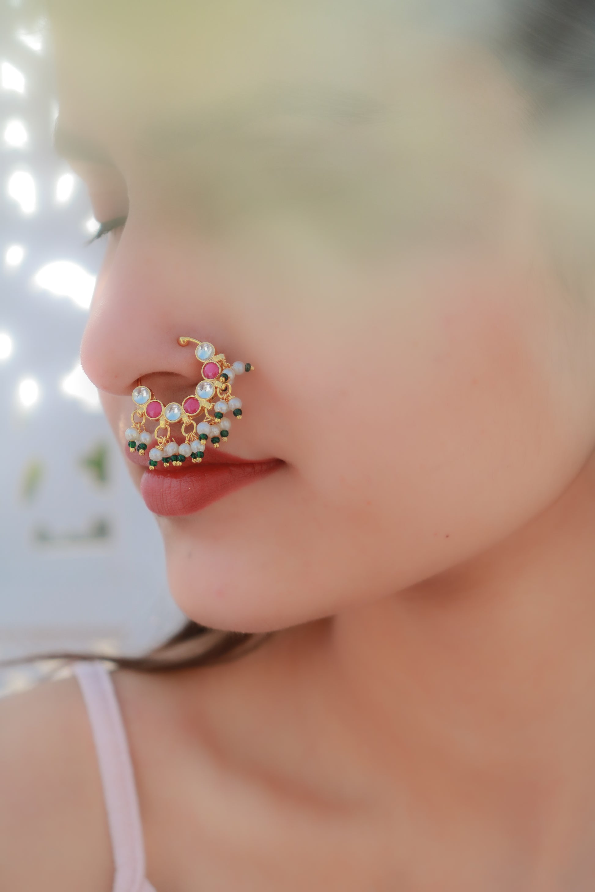 This is replete with grandeur and elegance. The design is encrusted with kundan and embellished with pearls, accentuating its beauty.