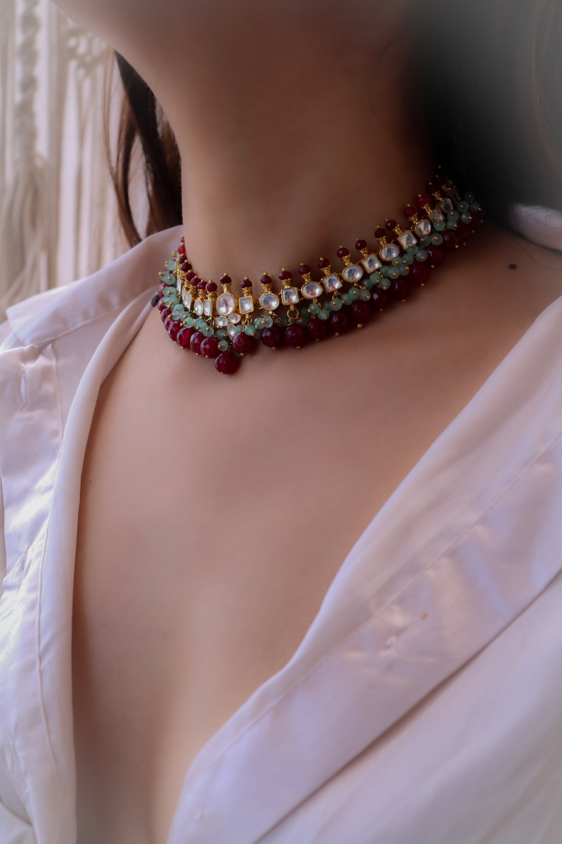 Ramona Red Kundan Necklace Set