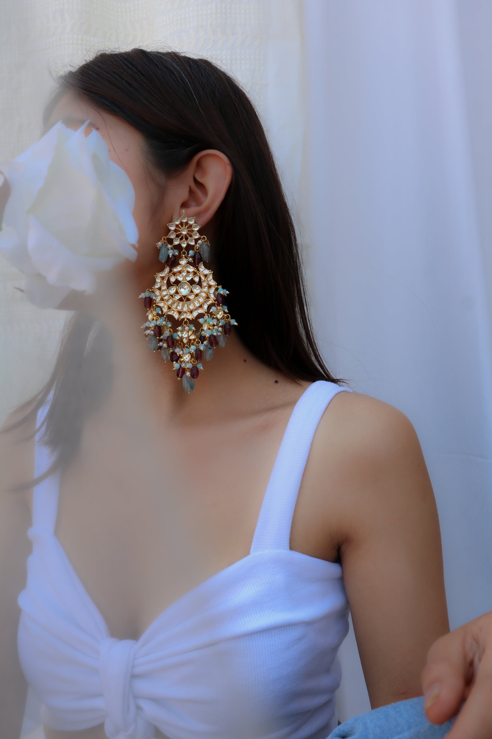 The Rhimjhim chandbali earrings are an ode to traditional Indian jewelry with a twist of contemporary sensibilities. The chandbali features a blast of chic color palette. Complete your wedding ensemble with this attention-grabbing pair.